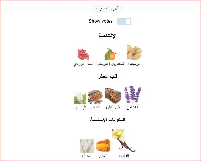 المكونات الأساسية: الفانيليا، خشب الصندل، الكهرمان، والمسك