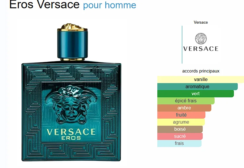 Masculine et confiante, l’eau de parfum Eros est une fragrance sensuelle qui fusionne des notes boisées, orientales et fraîches, créant un parfum puissant qui évoque Eros, le dieu de l’amour. « J’imaginais un homme héroïque et passionné, presque un dieu grec. Le parfum est composé de notes qui expriment la sensualité et la puissance, une force extrême », explique Donatella Versace.
