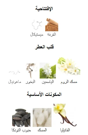 قاعدة العطر: فانيليا، مسك، حبوب التونكا، لمسات من البخور والكاكاو.