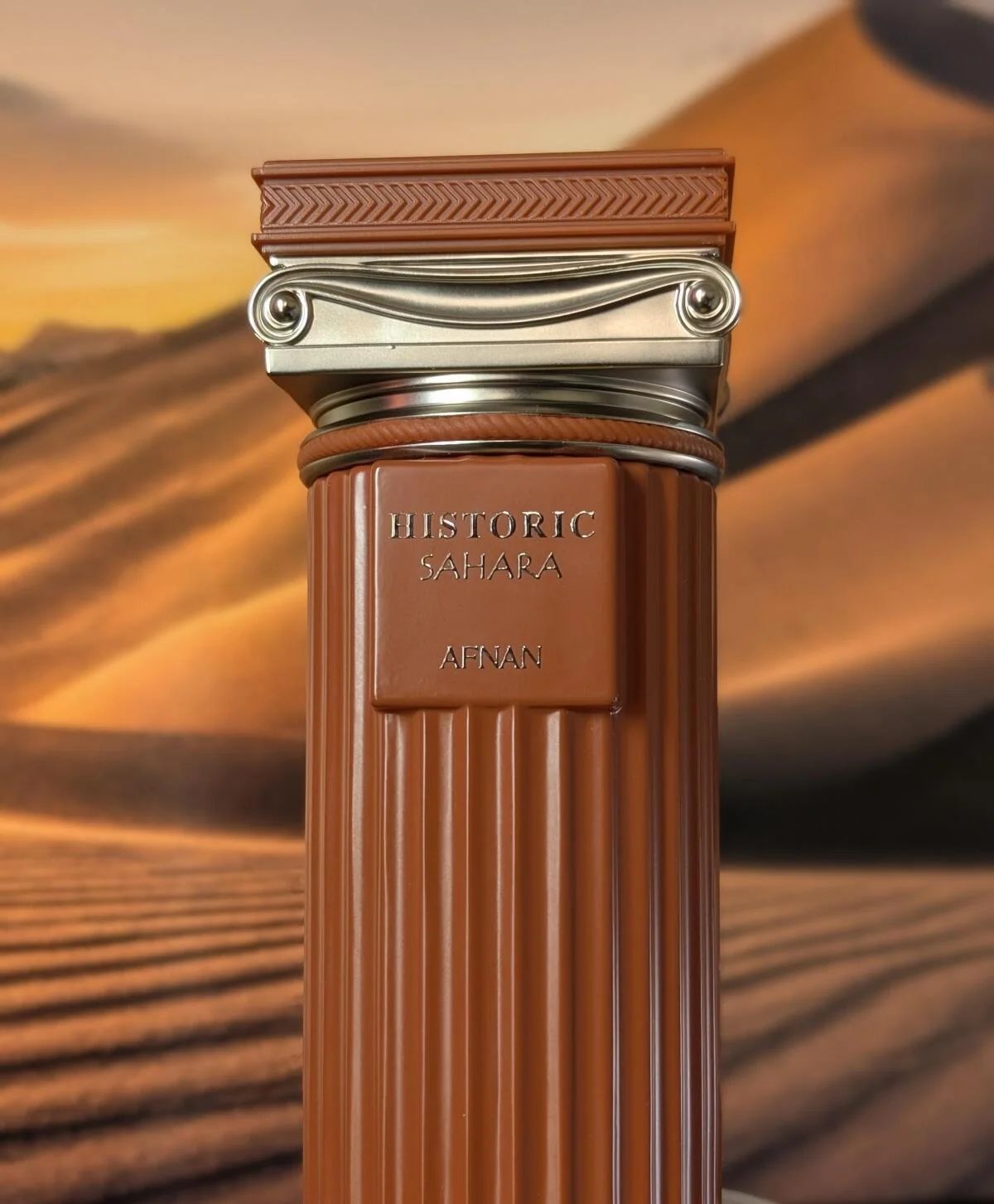 Historic Sahara Afnan عطر شرقي - فانيليا للجنسين. هذا عطر جديد Historic Sahara صدر عام 2025. Imran Fazlani قام بتوقيع هذا العطر. إفتتاحية العطر الهيل, القرفة و البرغموت; قلب العطر الفانيليا, الإليمي و السكر; قاعدة العطر تتكون من حلوي اللوز, اللوز, حبوب التونكا, المسك و الأمبروكسان.