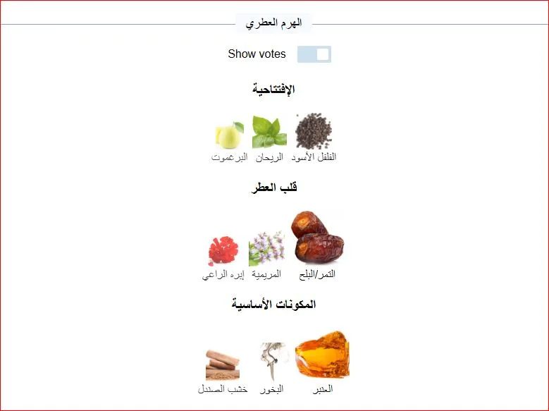 قاعدة العطر تتكون من العنبر، البخور وخشب الصندل.