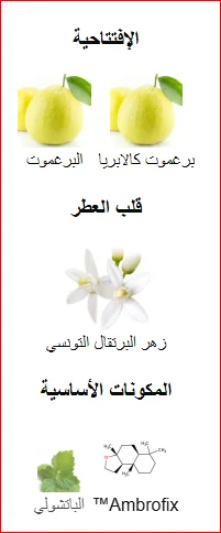 النوتات العليا:برغموت، ليمون، فلفل وردي (+ شوكولاتة محتملة)