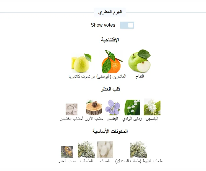 * قاعدة العطر تتكون من طحلب البلوط (طحلب السنديان), المسك, الطحالب و خشب العنبر.