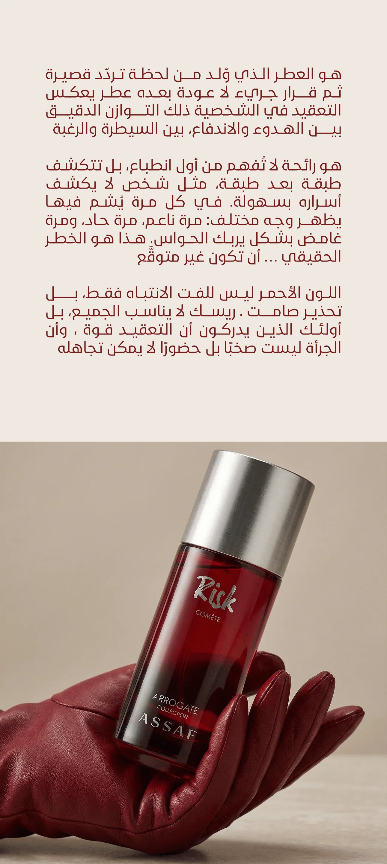 نحن متجر متخصص في بيع العطور الأصلية بعناية وشغف، حيث نؤمن أن كل رائحة تحمل حكاية. في محلنا بولاية البويرة أو في متجرنا الإلكتروني، نقدم لك أرقى المجموعات من العطور العالمية  لعشاق التميّز، مع ضمان الجودة والأصالة. نحن لا نبيع العطور فقط، بل نعيشها، ونشاركك شغفنا بهذا العالم الساحر، لتجد عطرك الذي يعكس شخصيتك ويترك بصمتك أينما كنت.