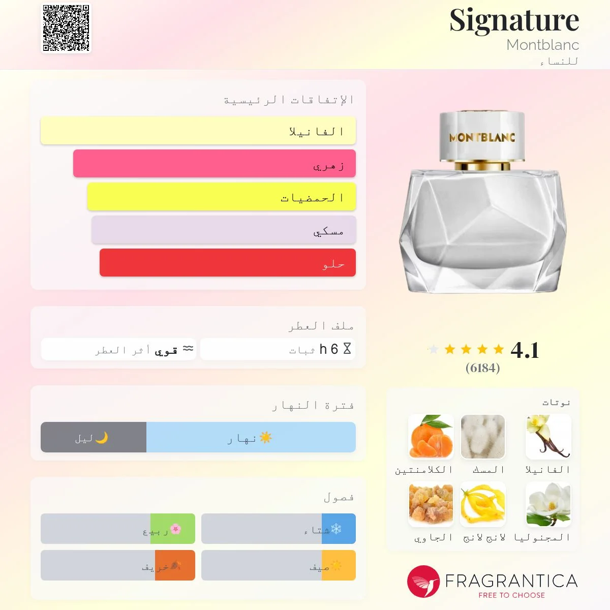 عطر Signature من Montblanc هو "التوقيع" الذي ينقص إطلالتك. عطر برائحة كريمية، بودرية، وفانيلا ناعمة غير مزعجة.