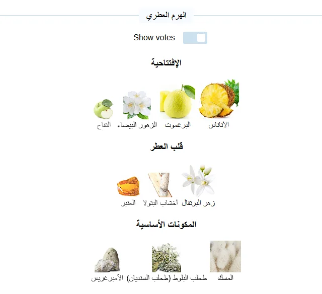 المكونات العليا هي الأناناس والبرغموت والزهور البيضاء والتفاح؛