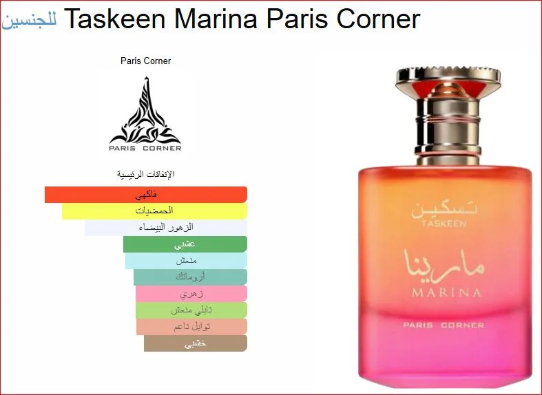 استمتع بسحر المناطق الاستوائية مع عطر تاسكين مارينا من باريس كورنر، عطر للجنسين مصمم ليأسر الرجال والنساء على حد سواء.