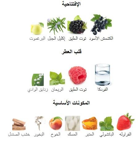 الافتتاحية: انطلاقة منعشة وحمضية من البرغموت، الكشمش الأسود، وتوت العليق مع لمسة عشبية من إكليل الجبل.