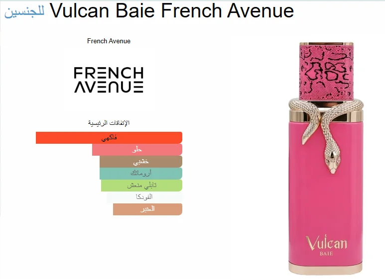 عطر Vulcan Baie الجديد من French Avenue هو خيارك الأمثل لإطلالة لا تُنسى. هذا العطر بتركيبة عطرية معقدة ومتناغمة تناسب الرجال والنساء الباحثين عن التفرد.